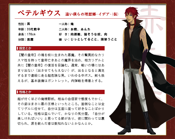 赤毛祭にてベテルギウスのエントリーシートが公開されたので、こちらでもちょっと紹介。